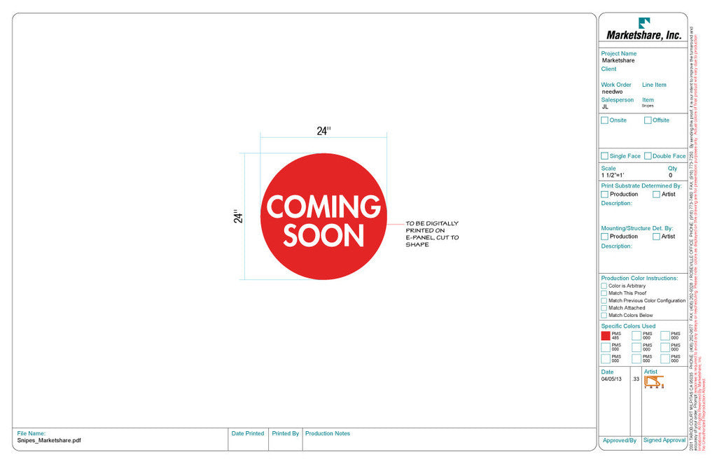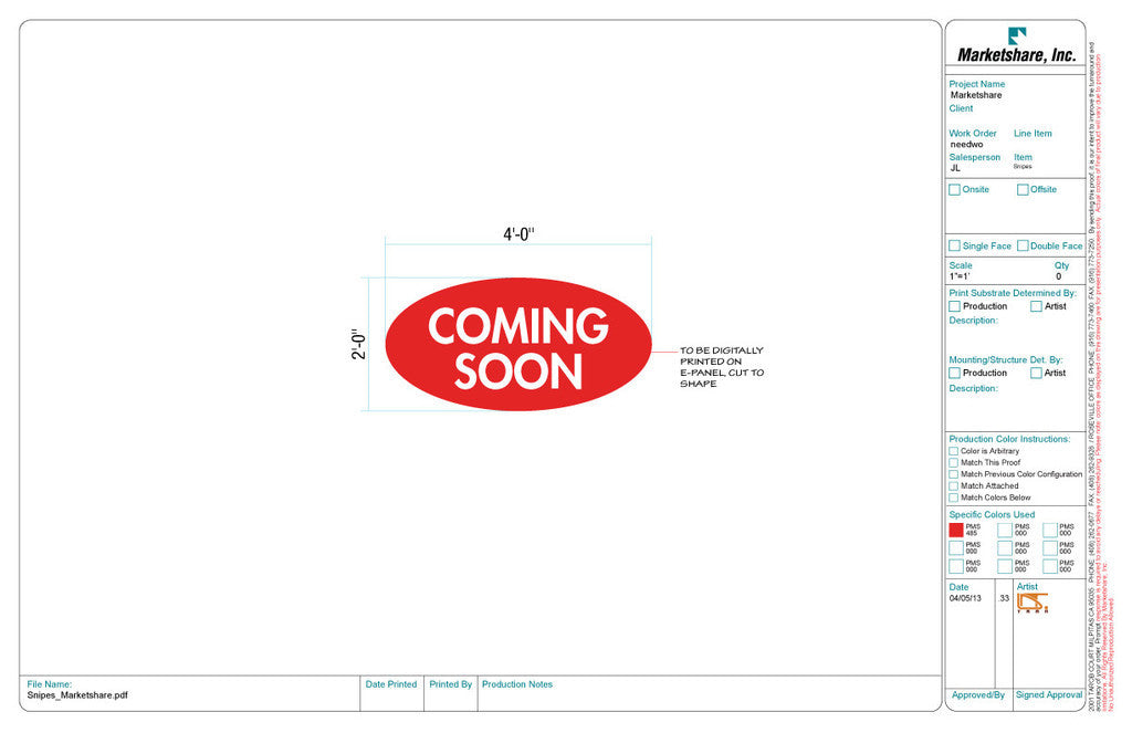 Add variety to your housing project's advertising and directional program with Marketline's "Coming Soon" stock snipes. Our snipes are printed on E-Panel (Dibond), primed, back-painted and finally screw mounted to your existing sign.