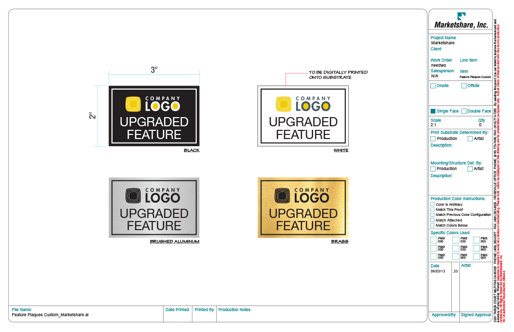 2" x 3" custom upgraded feature plaques