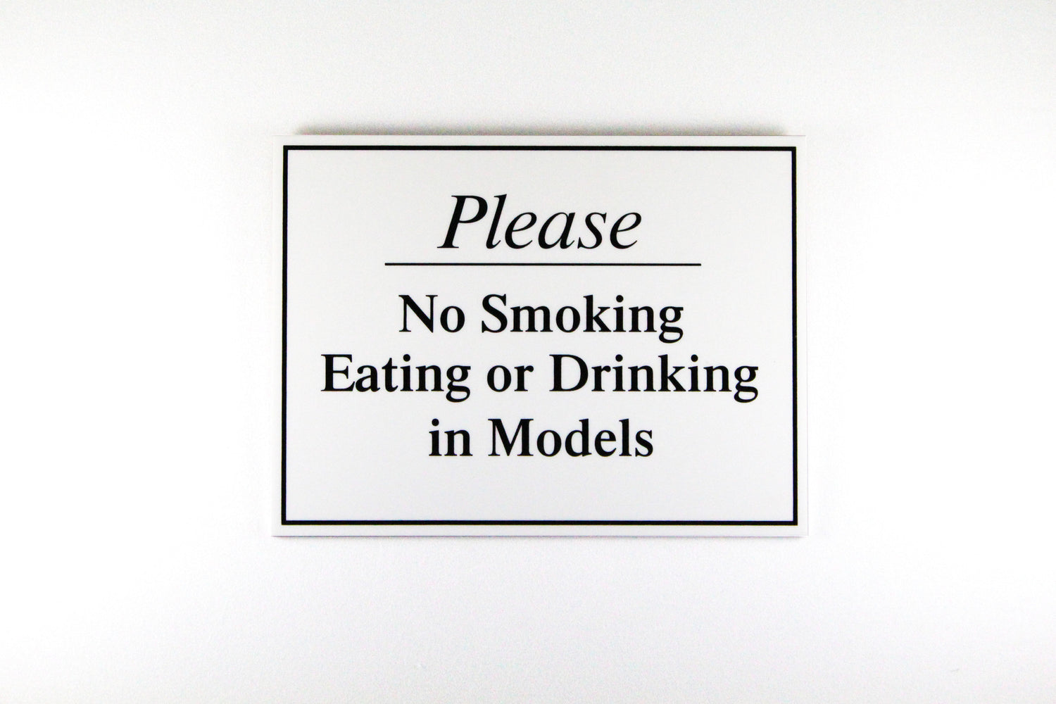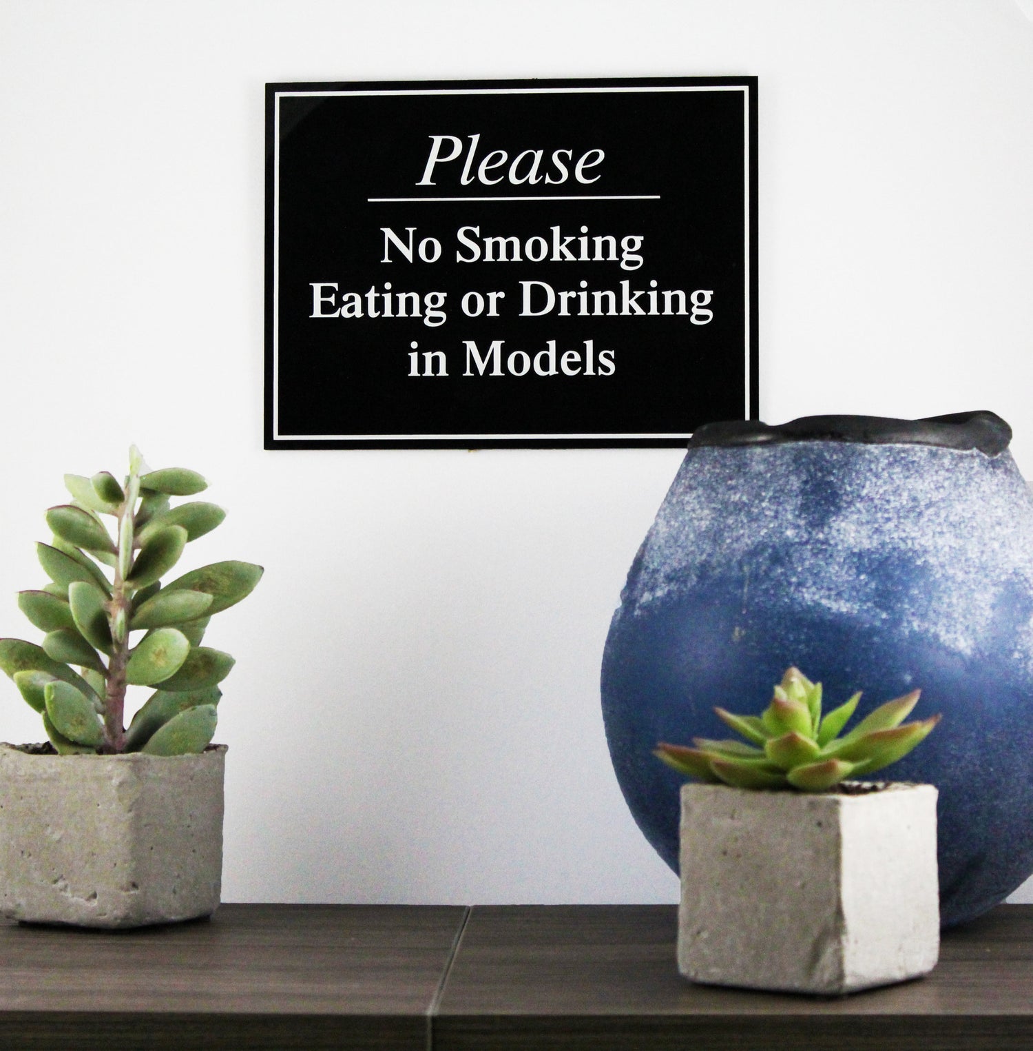 Keep your model homes clean and tidy with Marketline's No Smoking Eating or Drinking in Models Plaque.